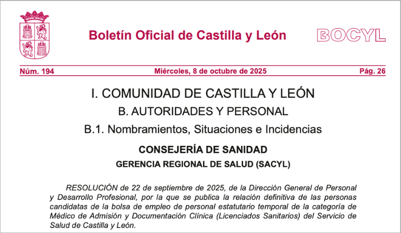 Entra en vigor al día siguiente de la publicación de la Resolución en el Boletín Oficial de Castilla y León y anula las listas anteriores vigentes.